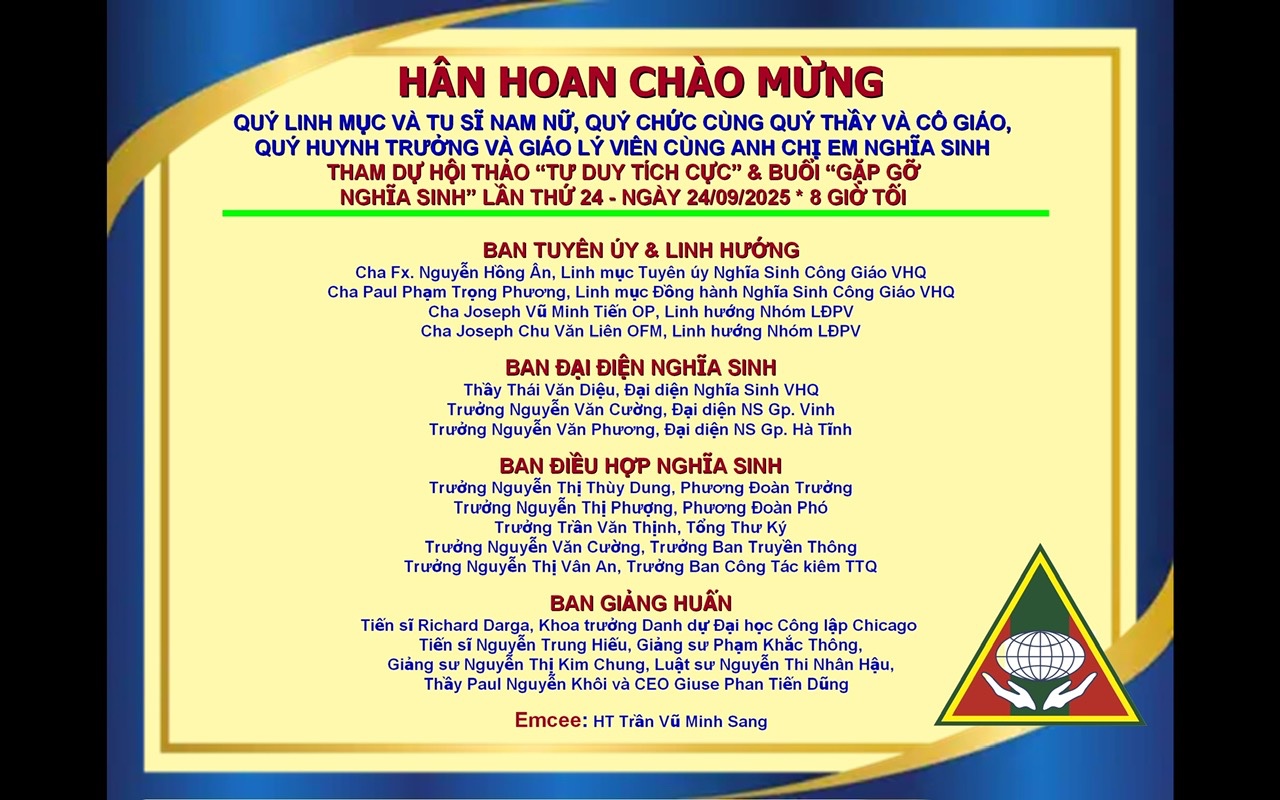 - ✝️ Cha Tuyên úy sẽ chia sẻ đề tài Tư duy Tích cực